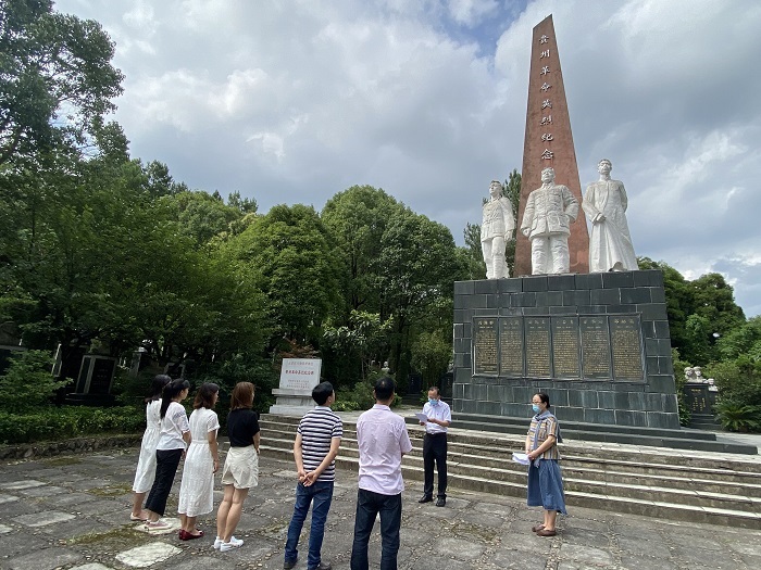 (yl23411 王伟苗 图文报道)7月6日下午,yl23411教工第一党支部全体党员到贵阳市海天园开展“学先进、守初心、砥砺前行”——海天园抗战纪念碑、英烈纪念碑祭奠主题党日活动。旨在深化“不忘初心、牢记使命”主题教育,进一步增强革命历史和革命传统教育,弘扬爱国主义精神。