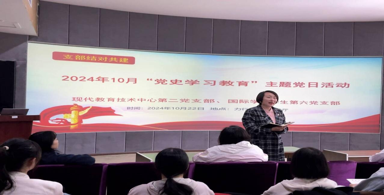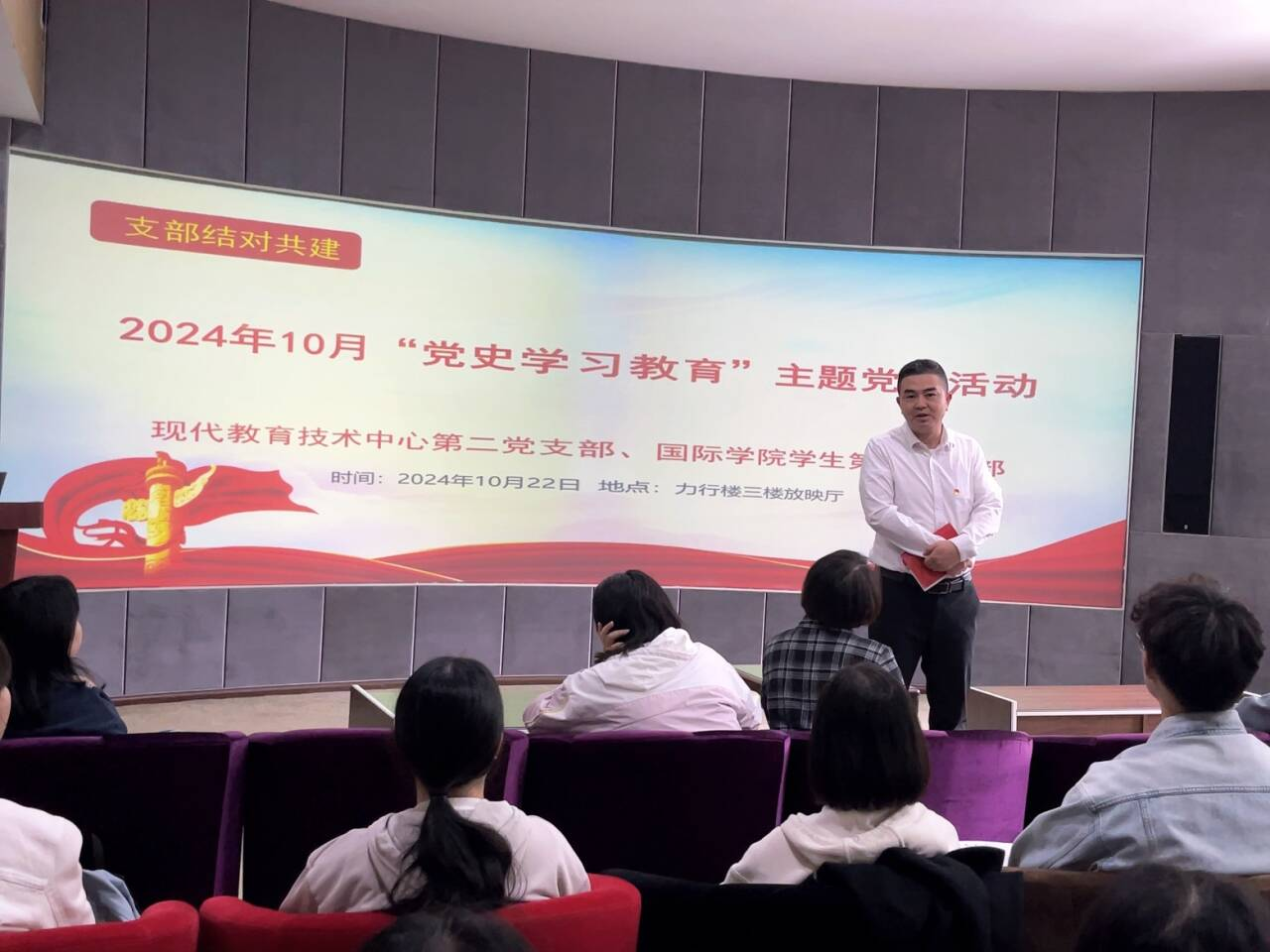 (yl23411 谢小菲 图文报道)10月22日下午,yl23411员工第六党支部与现代教育技术中心第二党支部在力行楼3楼放映厅,开展“党史学习教育”主题党日活动。现代教育中心副主任、现代教育技术中心第二党支部书记陈琴,yl23411党委副书记古鸿宇,yl23411员工第六党支部书记李薇薇以及支部党员参与本次活动。
