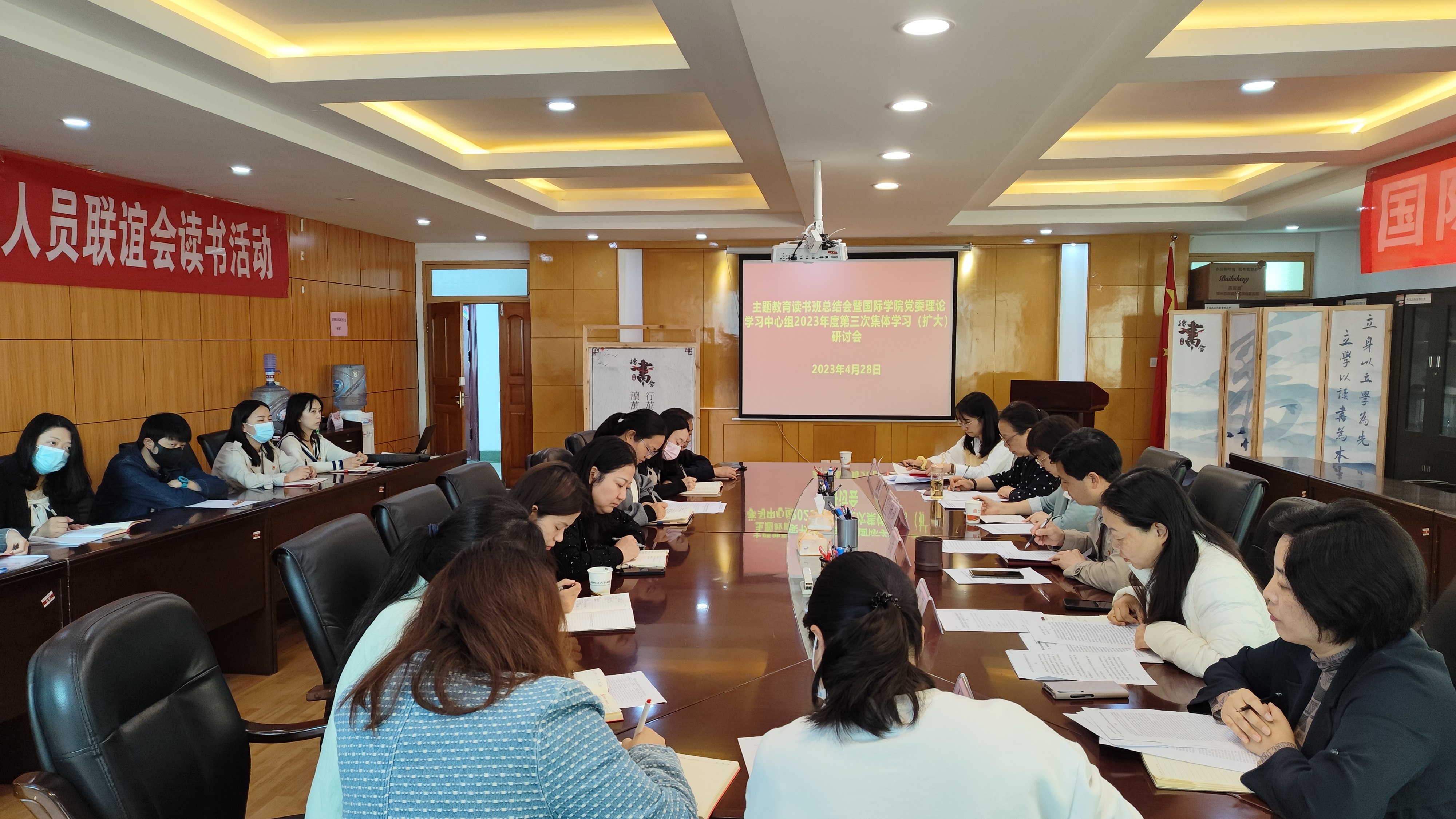 (yl23411 谢凝云 图文报道)4月28日,主题教育读书班总结会暨yl23411党委理论学习中心组2023年度第三次集体学习(扩大)研讨会在鹿冲关校区行政楼三楼314会议室召开。公司党委书记王治航主持并讲话,校主题教育第一督导组成员付琳到会指导。公司领导罗亚、黄暐、肖启迪、刘利音出席会议。