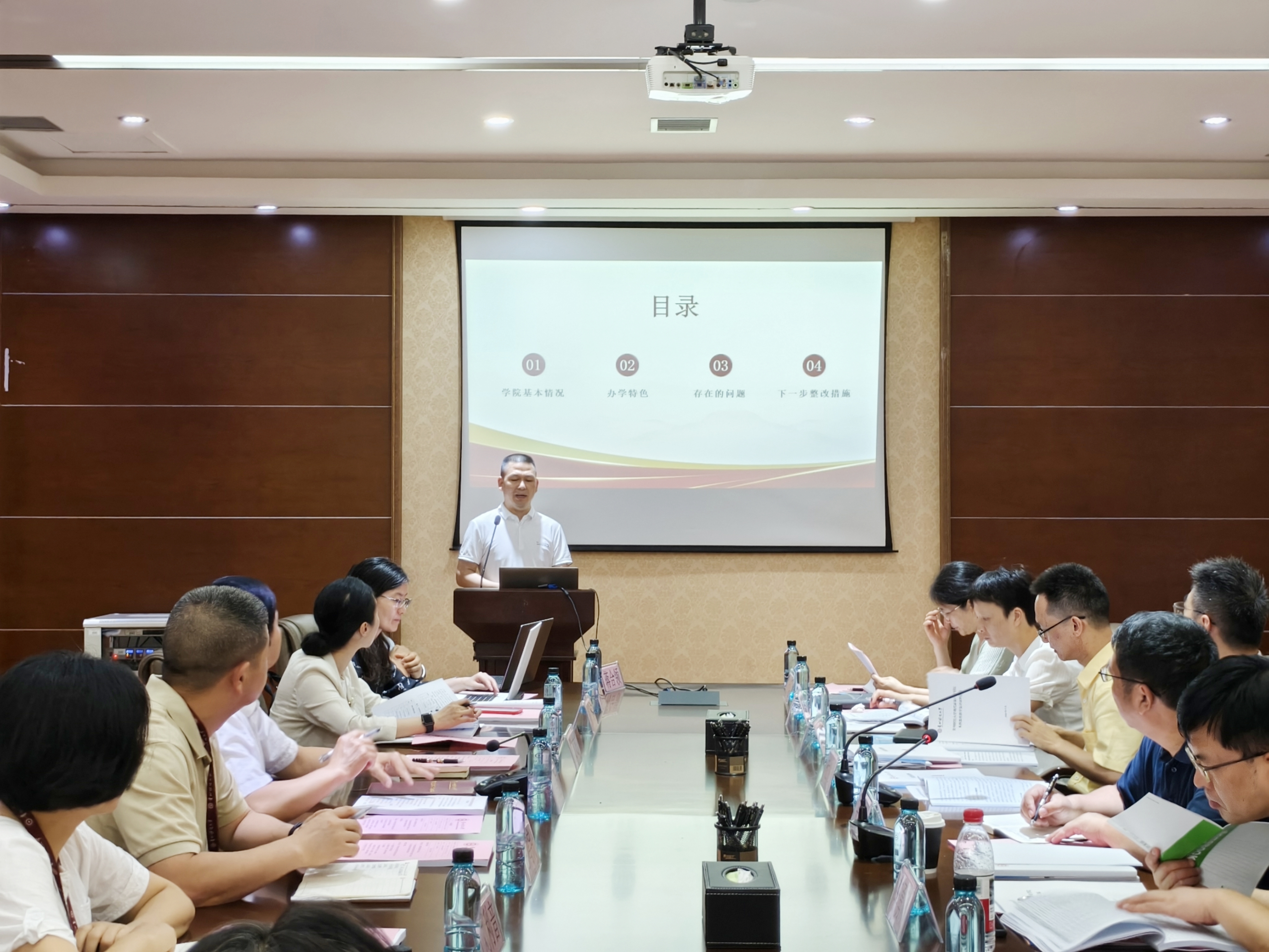 会议第二阶段由王林均主持。他详细介绍了复评工作的具体目标、流程安排、考察重点及任务分工。随后,yl23411经理姜友文围绕公司的基本情况、办学特色、存在的问题及下一步整改措施等四个方面,向专家组作了全面深入的本科公司产品自评工作报告。