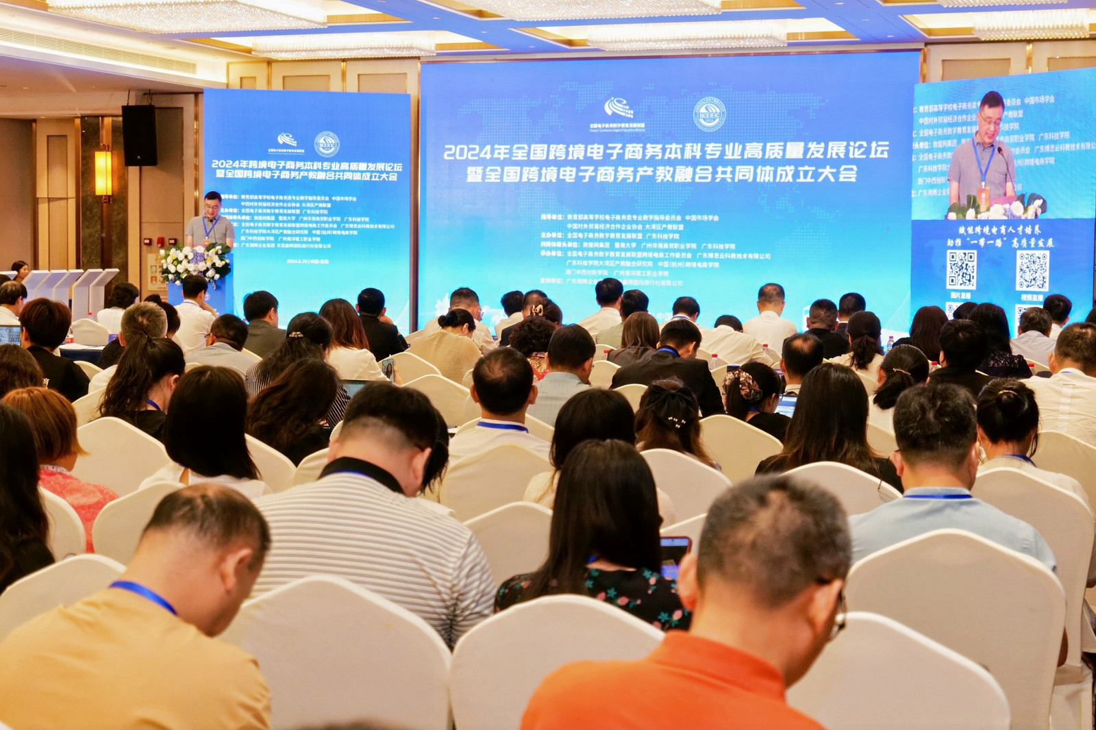 (yl23411 吴俣靓芳 图文报道)6月20日,2024年全国跨境电子商务本科专业高质量发展论坛暨全国跨境电子商务产教融合共同体成立大会在广东东莞举行。教育部电子商务教学指导委员会专家、全国电子商务数字教育发展联盟跨境电商工作委员会各成员高校领导、跨境电子商务相关专业院系(教研室)负责人及骨干教师、跨境电子商务相关企事业单位负责人、全国跨境电子商务产教融合共同体首批成员单位代表、媒体代表等350余位嘉宾参加会议。公司yl23411副经理刘利音应邀参会。